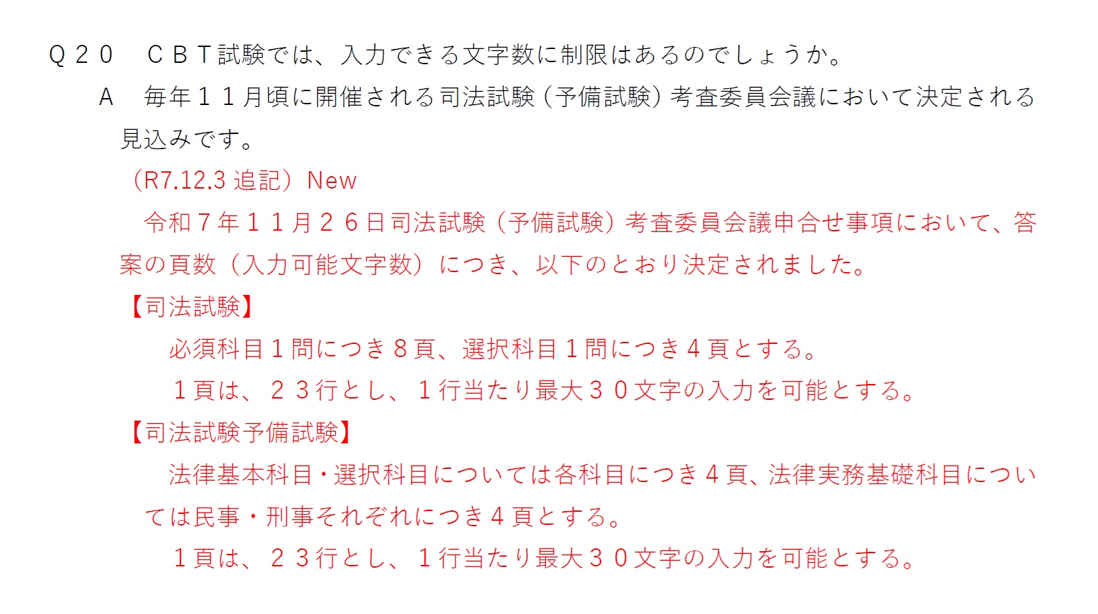 今回追加された内容は、2025年11月28日付けで追加された内容に比べて、遥かに重要であり、特に、1点目(文字数制限)については、今後の出題傾向と答案練習にも関わってくるものです。