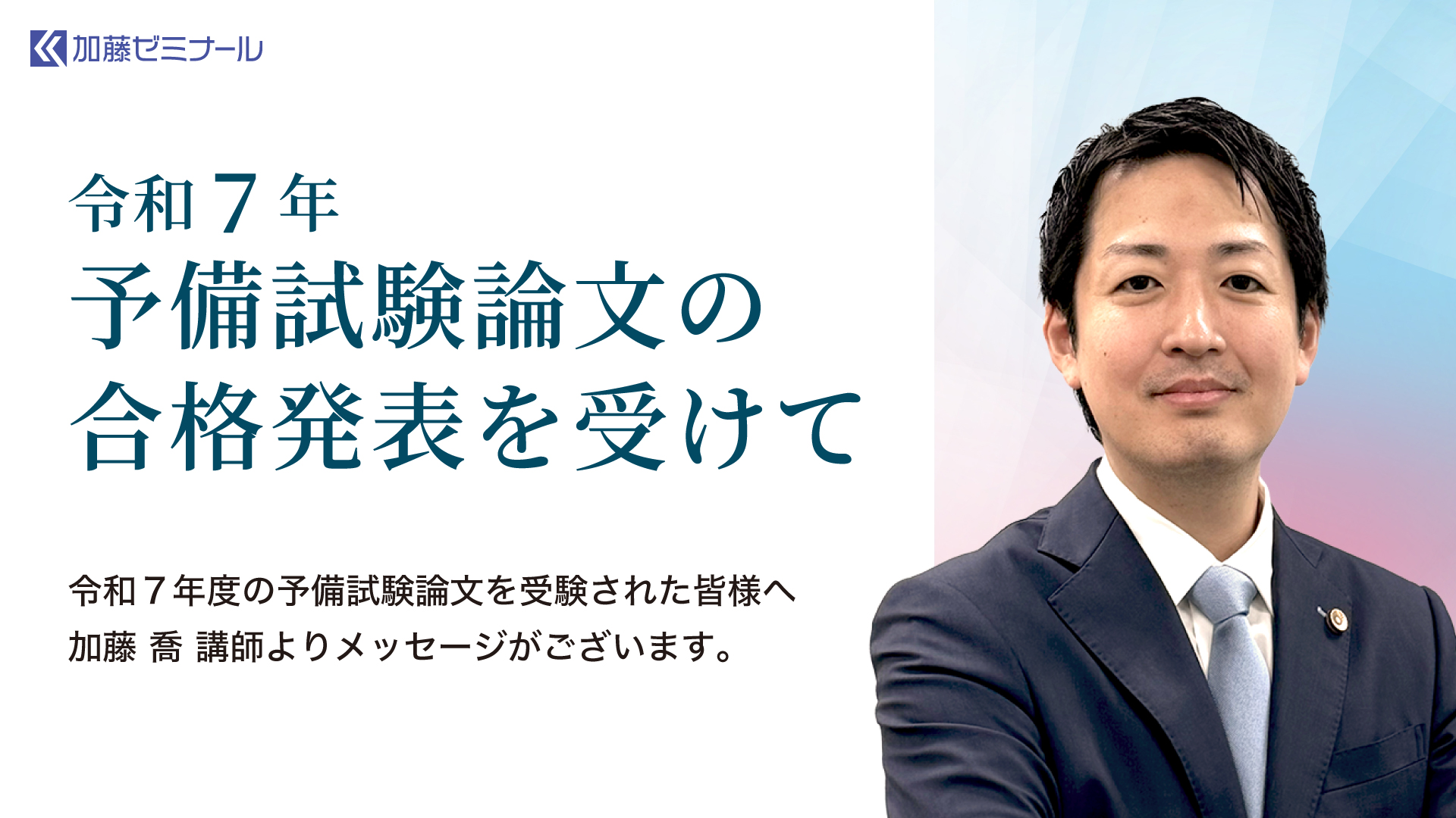 加藤ゼミナールは、加藤喬講師が代表を務める予備試験・司法試験のオンライン予備校です。