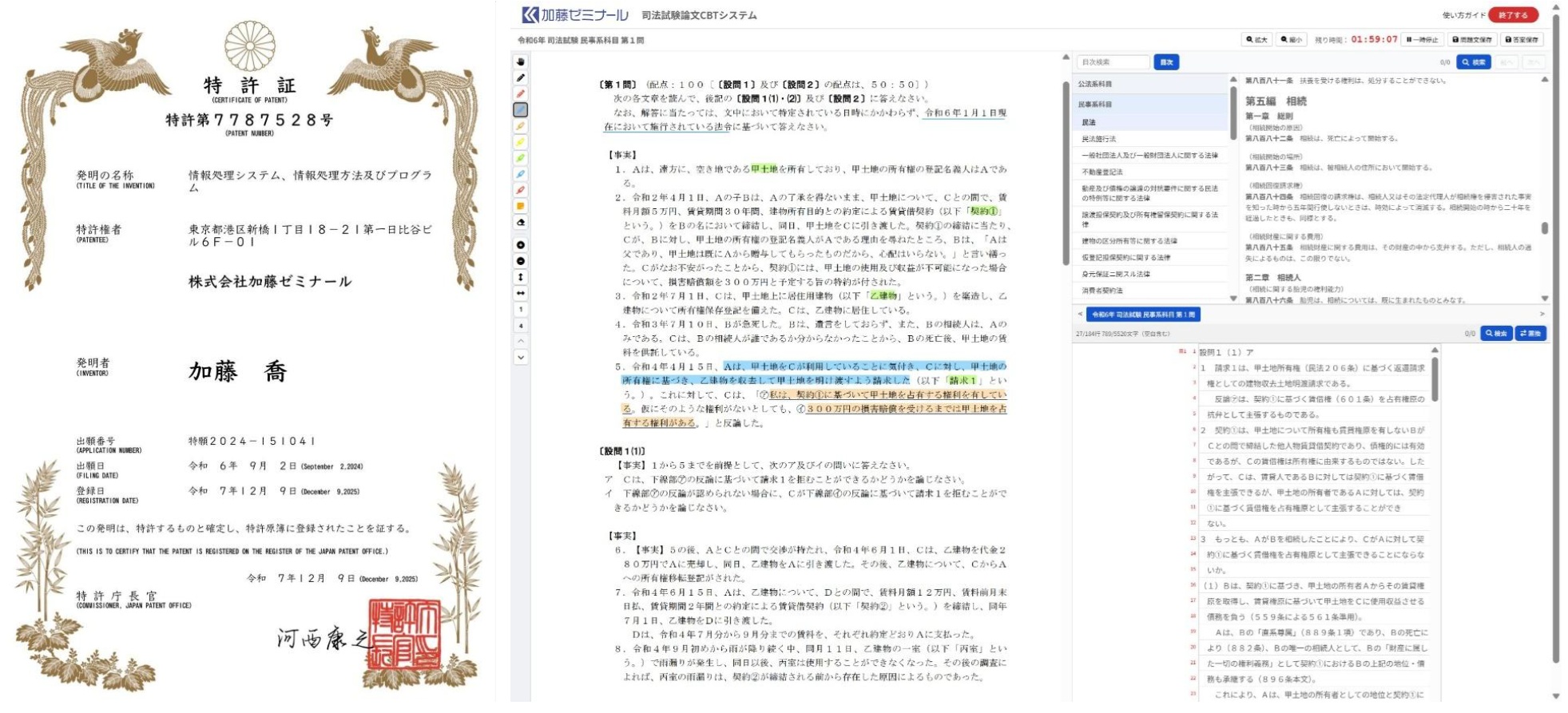 試験対策DXを進め、短答条文・判例ライブラリーでは特許を取得でき、自社開発した論文式CBTシステムは法科大学院にも導入予定です。